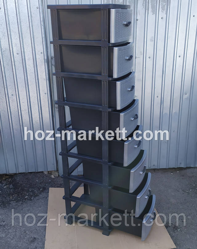 Комод пластиковий на 8 ящиків сірий стане в пригоді як для дитячого зберігання іграшок, так і для ванної кімнати або кухні для зберігання різноманітних домашніх предметів.