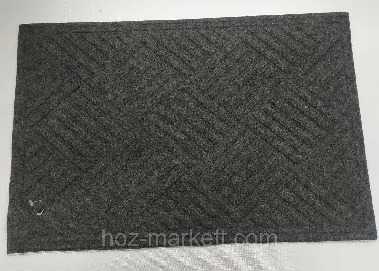 Килимок 90 х 60 см ворс на гумовій основі з малюнком сірий. Гумова основа перешкоджає ковзанню та попаданню вологи на підлогу. Гумовий килимок з ворсом.